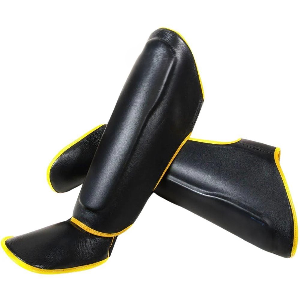 A raised knee area has been incorporated along with a contoured shin ridge which includes a full foot cover for ultimate shock absorption and maximum safety during all sparring and training scenarios.